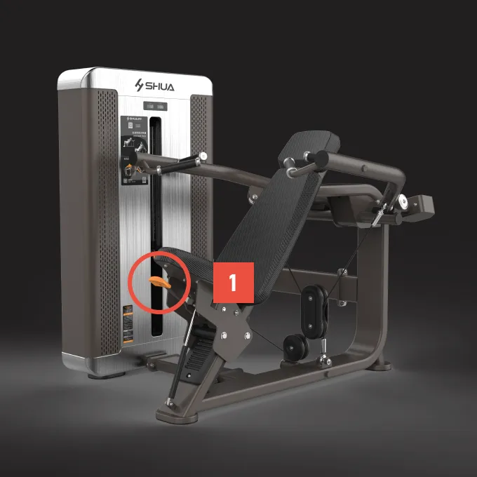 図①のシート下のレバーでシートの高さを調整しましょう。座った時に肩の上にバーがあるくらいの高さが目安です。