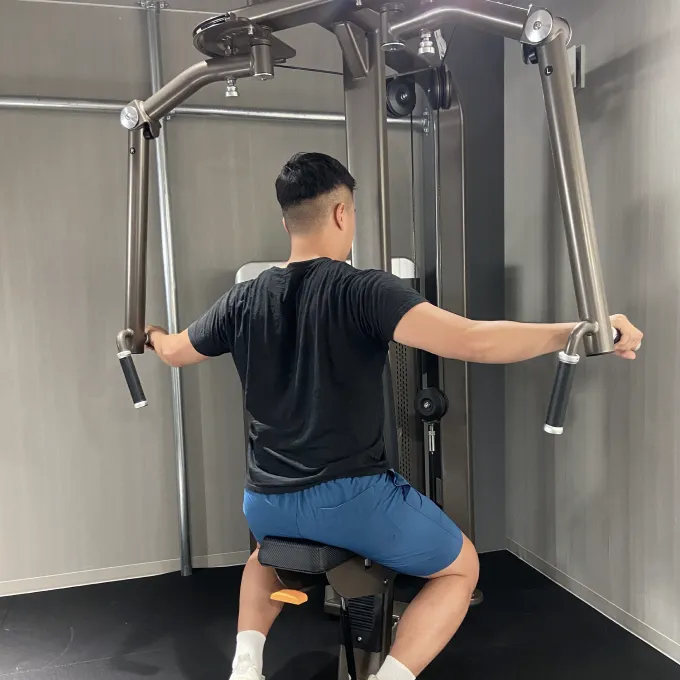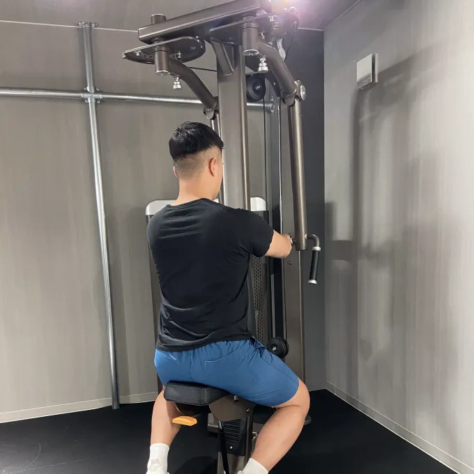 重量設定をしましょう。初期では少し重く感じるけれども10回くらい繰り返すことができる重さを目安にしましょう。