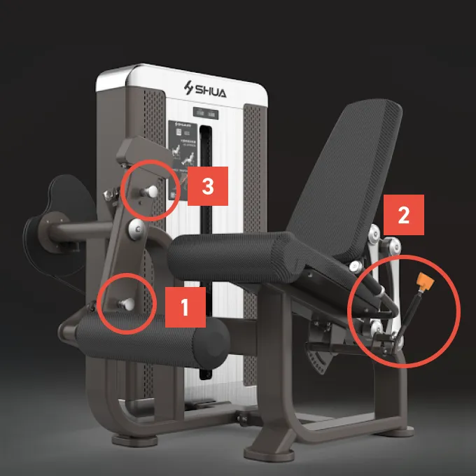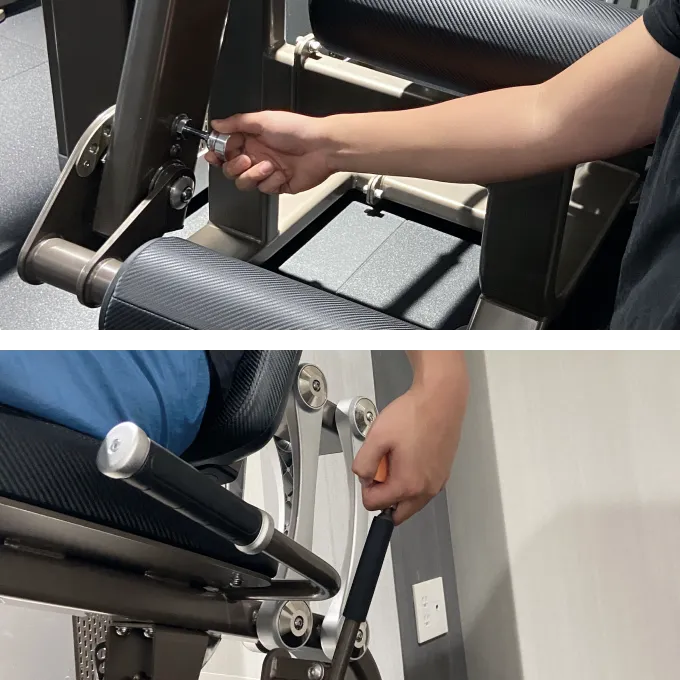 足首の位置にパッド、シートに膝の後ろが当たる位置に背もたれを合わせます。