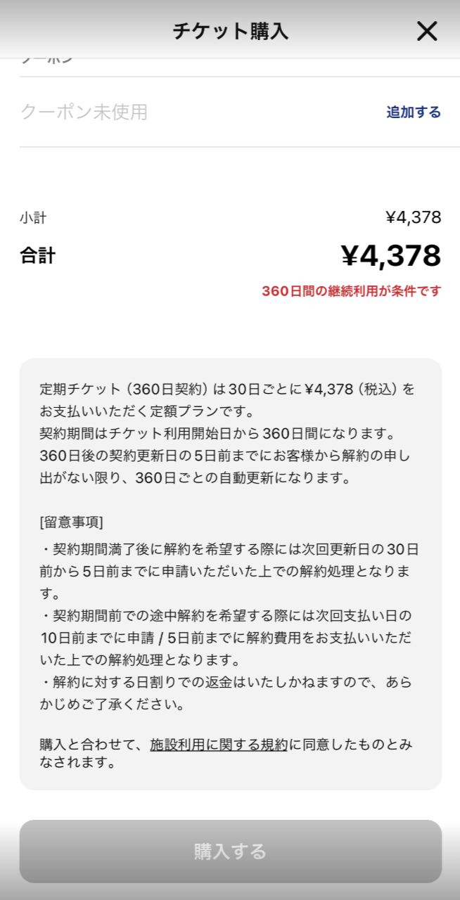 30æ¥ééãæŸé¡ãšãªããŸãã1æ¥ã«äœåã§ããå ¥å Žã»ãå©çšå¯èœã§ã