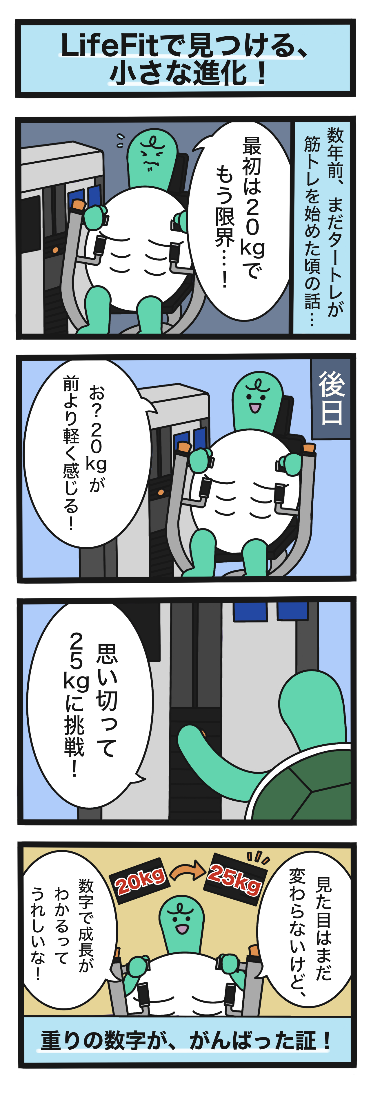 LifeFitでは、マシンの重さだけでなく、ジムに通うだけでも日々の自分の変化を感じられます!