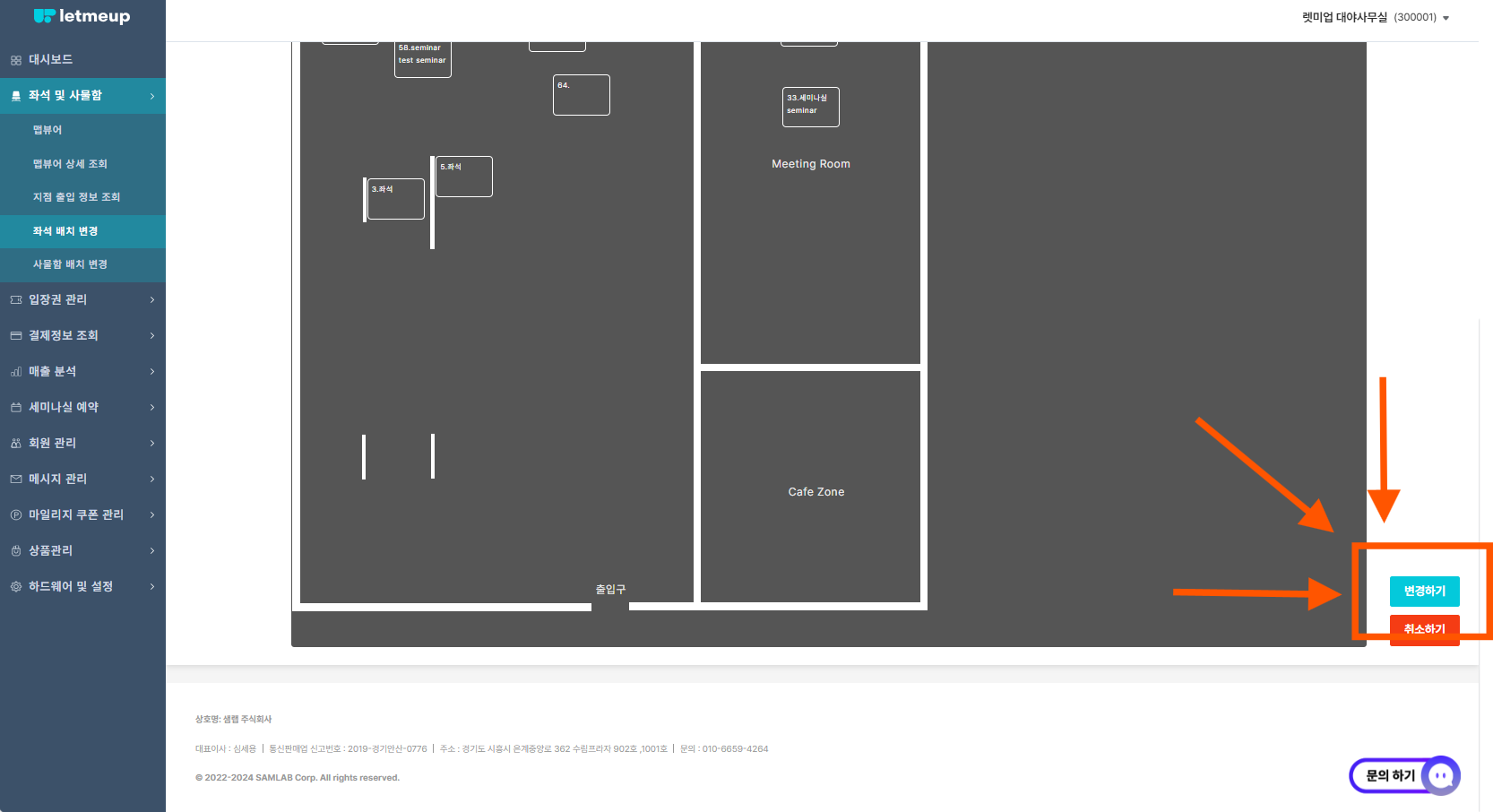 관리자 페이지: [좌석 및 사물함] → [좌석 배치 변경]