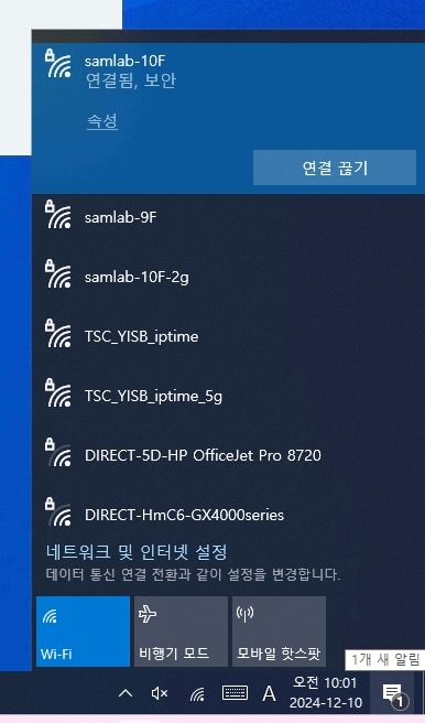 2. 우측 하단에 WiFi 버튼을 클릭 후 연결 할 WiFi 에 연결
