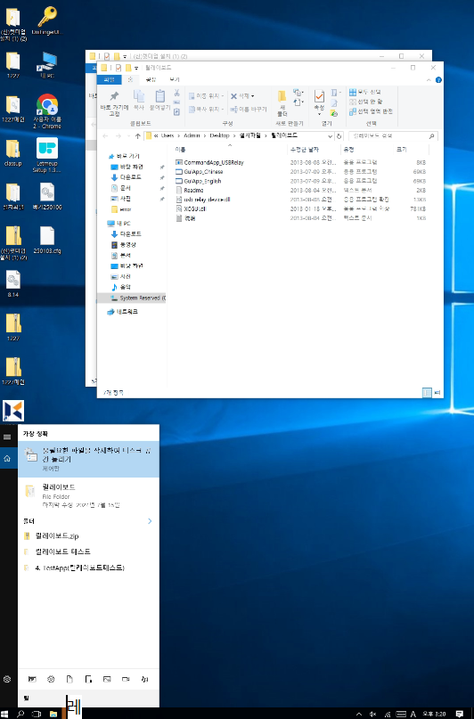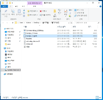 윈도우에 릴레이보드를 검색하여 릴레이보드 테스트 폴더를 찾아 주세요