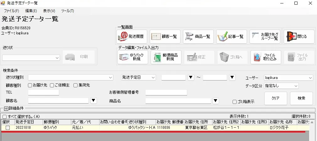 5. 取り込まれたデータが発送予定データ一覧に表示されていることを確認します。