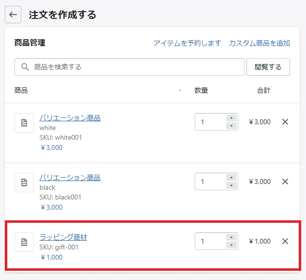 Shopify連携以外でギフト対象をONにしても以下の通り機能しません