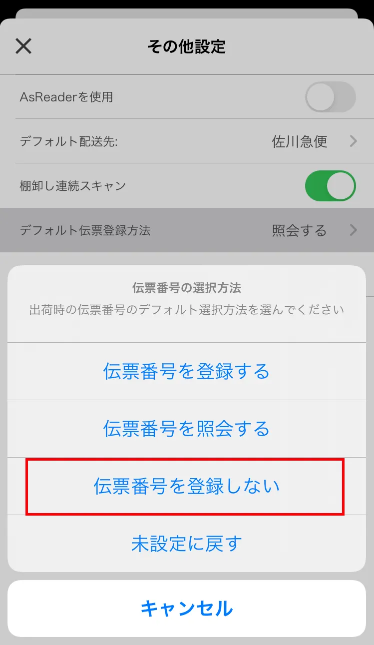 外部サービスと連携している場合、商品点数や出荷内容により再度スマホアプリを利用した検品ではなく、誤って出荷した出荷実績をCSVエクスポートする、もしくは納品書を再度印刷し目検していただくほうがスムーズな場合もございます。