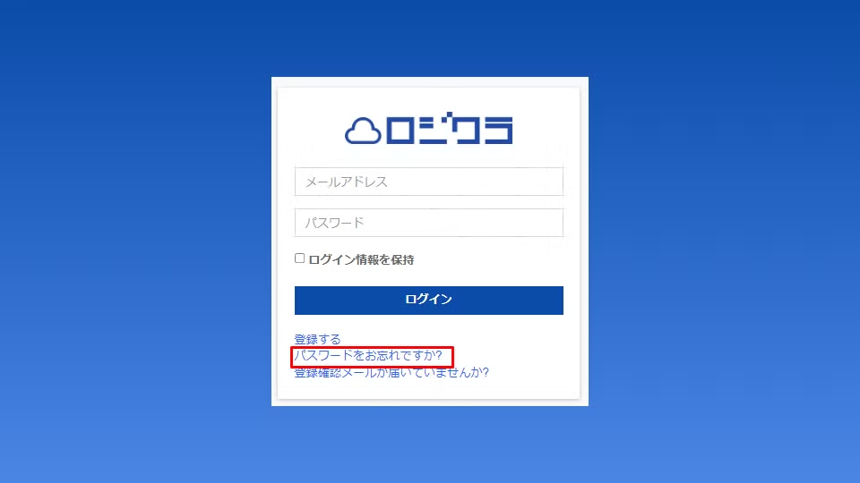 ロジクラの管理画面からログアウトしていただき、「ログイン画面」に移動します。