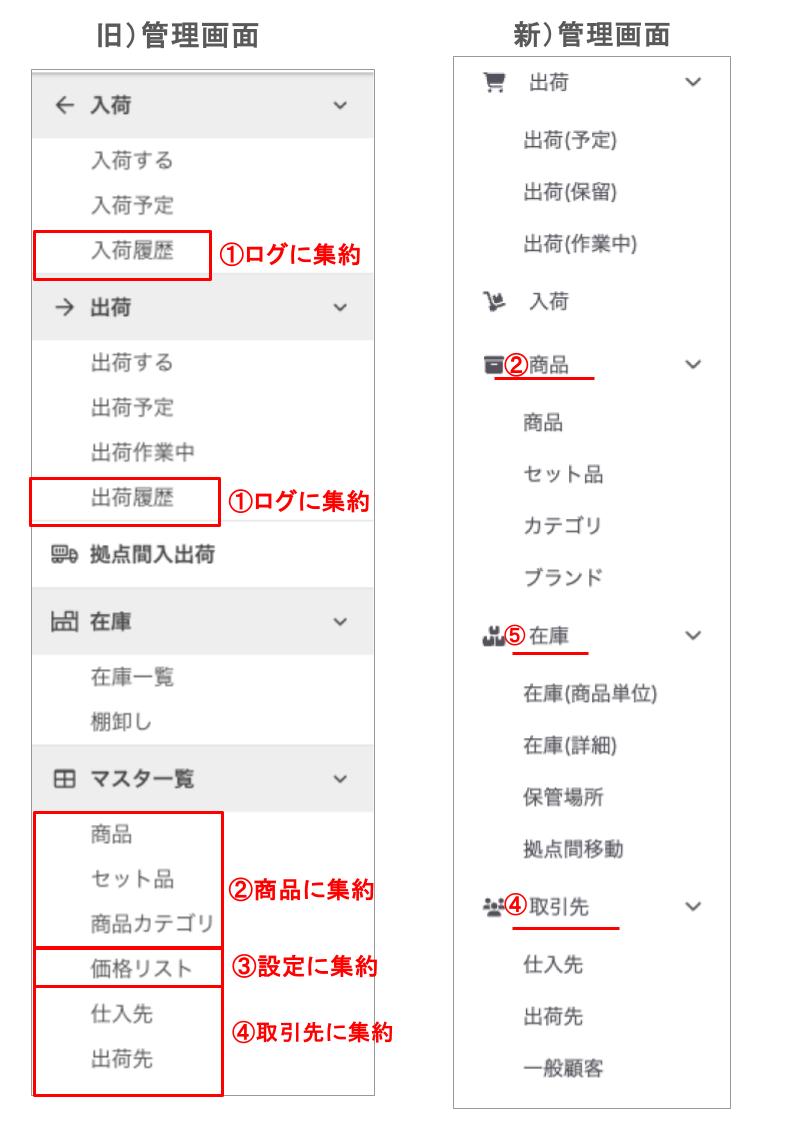 旧管理画面>新管理画面 変更点