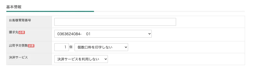 ヤマトビジネスメンバーズの請求先顧客コードが複数ある場合は、この部分は空欄にしていただき、ヤマトB2クラウドの送り状取り込みフォーマットを固定値設定して取り込めるよう設定してください。