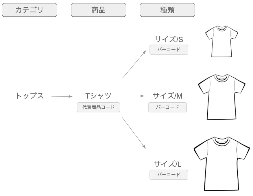ロジクラでは商品マスタを「カテゴリ」「商品」「種類」という三段階で構成していきます。
