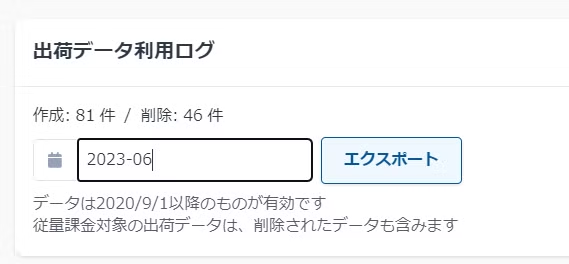 「出荷データ利用ログ」から確認したい年月を選択し、件数を確認します。