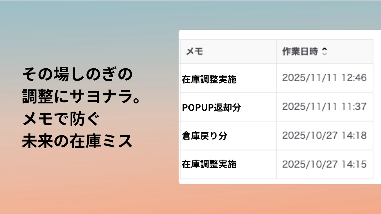 実在庫とロジクラの在庫数に差異がある場合の経緯確認や、追加発注タイミングの参考データとして活用、などの目的でご利用いただけます。