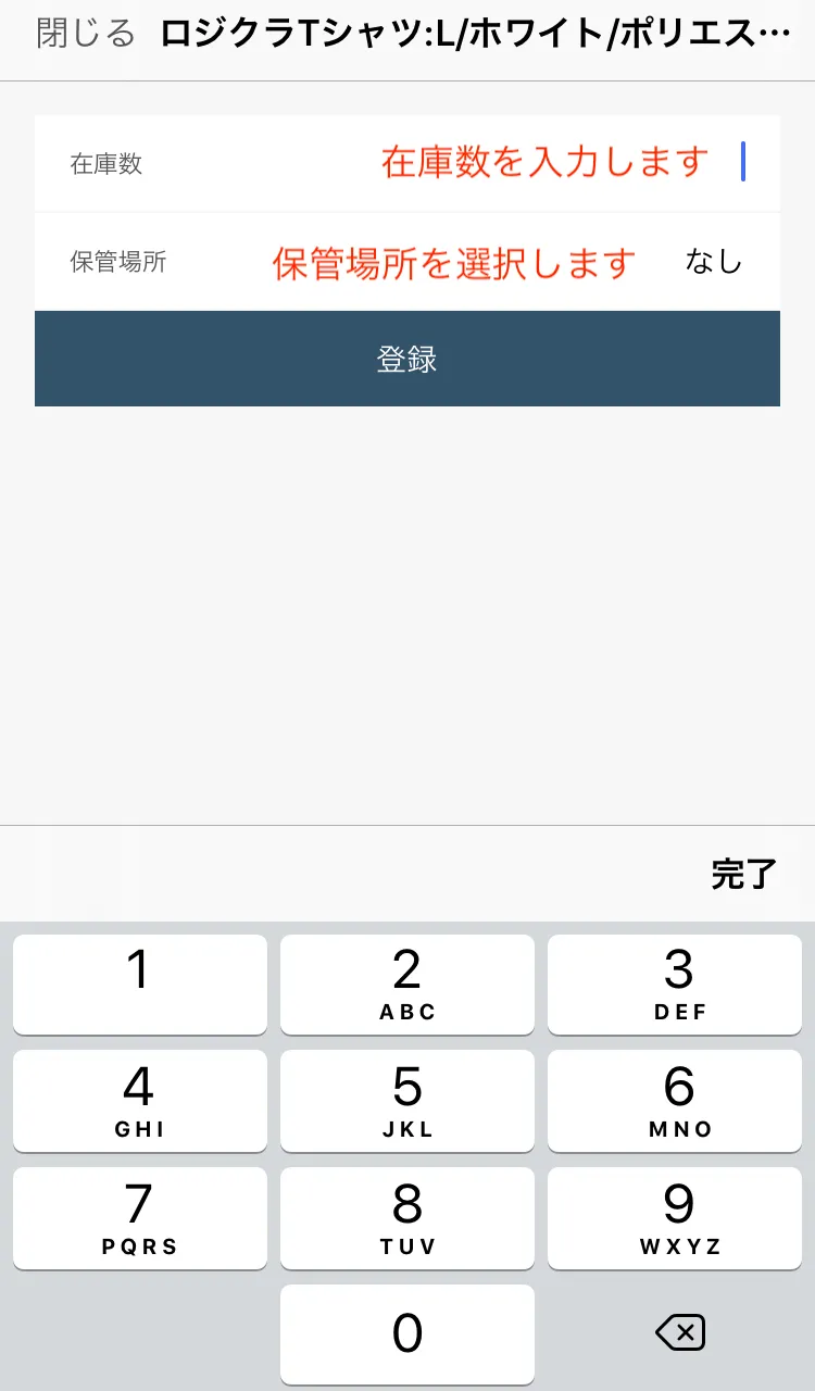 商品の ”バーコード” の情報をキーに在庫数を登録します。事前に商品のバーコードが正しく登録されているか確認してください。