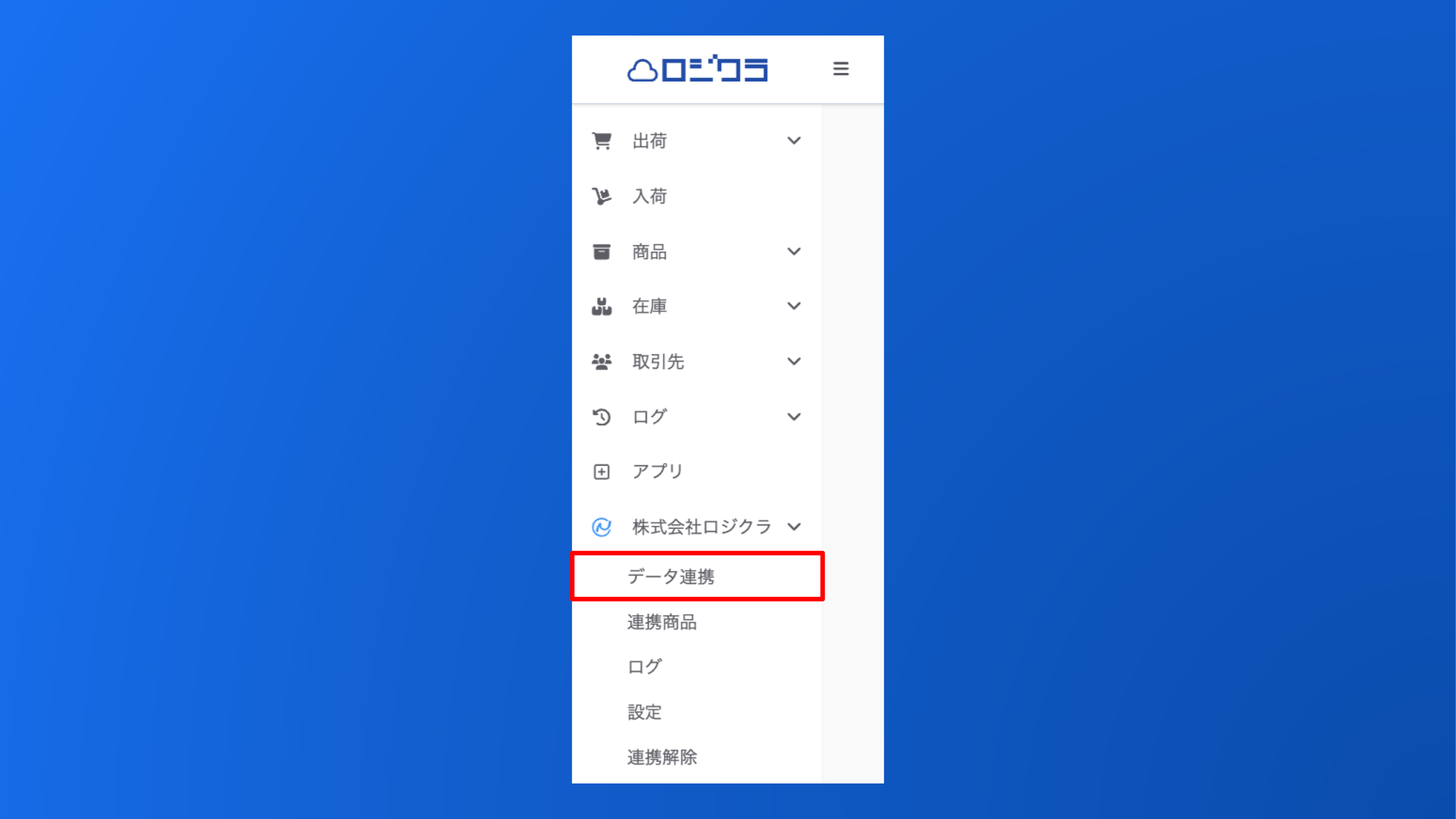 左側メニュー ネクストエンジンアプリ > 連携設定> データ連携を選択