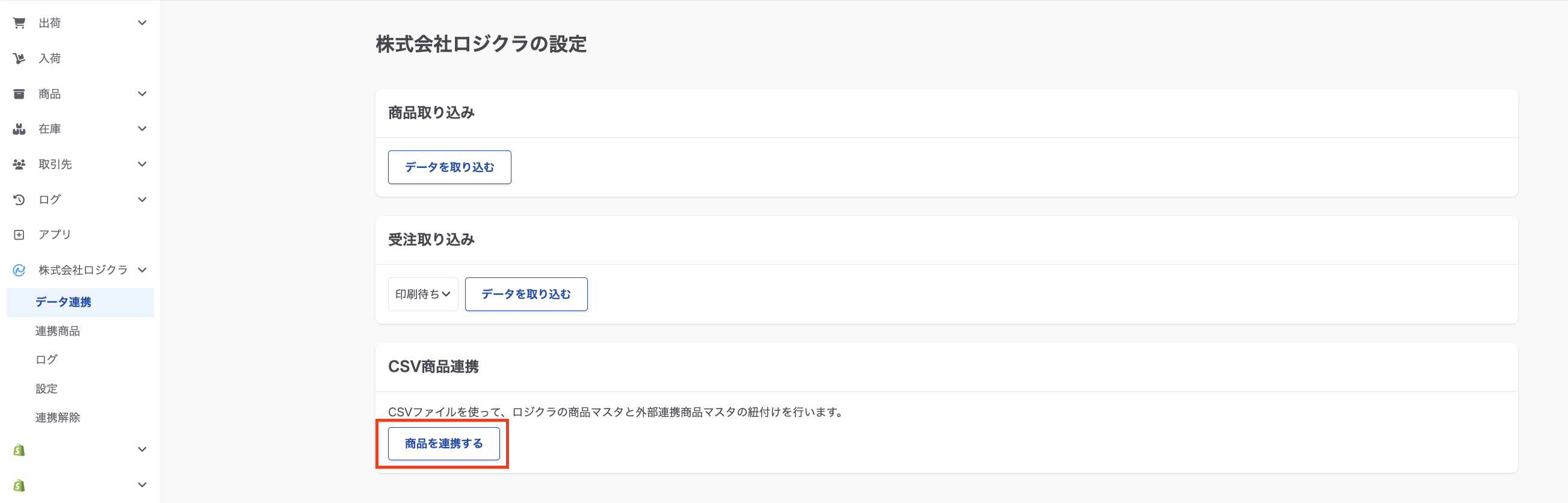 この紐付けは入出荷連携時に商品情報を呼び出すものとして登録しますので、