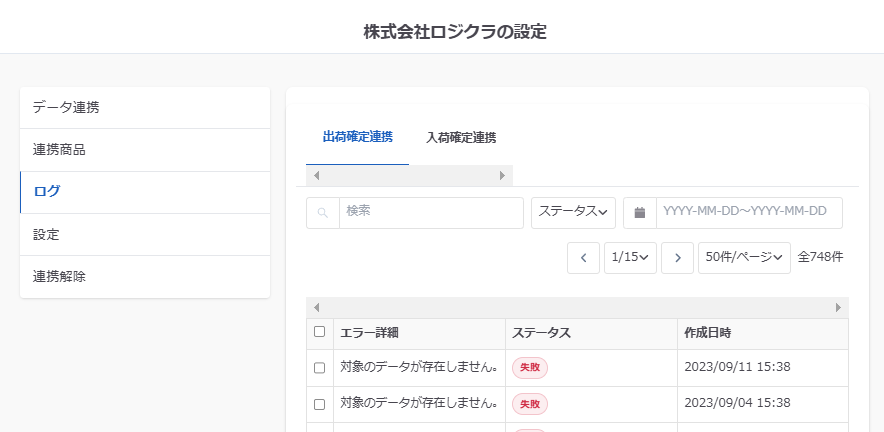 エラーにより連携しない場合は、ロジクラのネクストエンジン連携設定、ログよりエラーを確認してください。