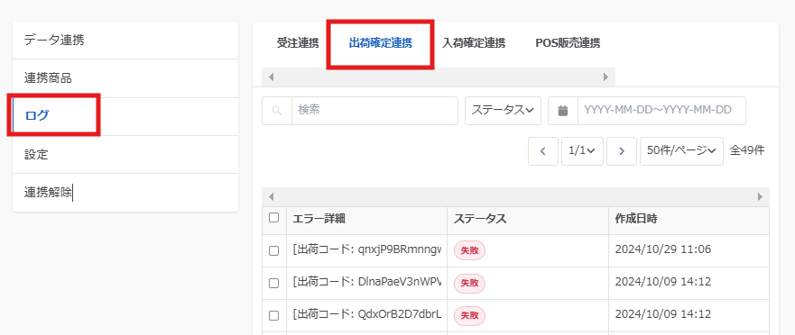 エラーにより連携しない場合は、ロジクラのネクストエンジン連携設定、ログよりエラーを確認してください。