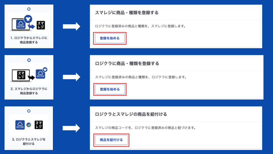 選択した登録方法で「登録を始める」または「商品を紐づける」をクリック