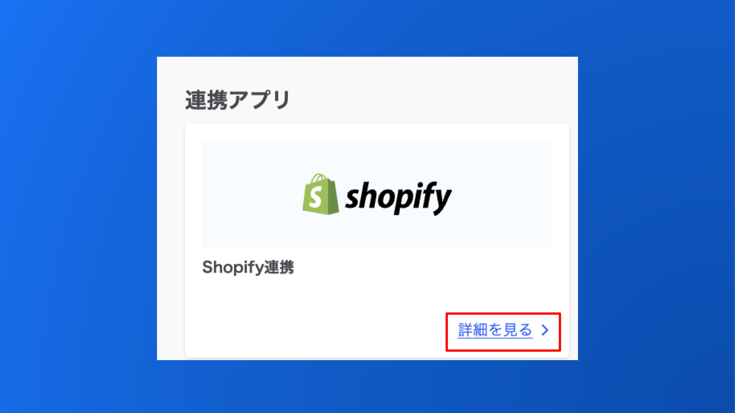 連携ショップの追加にShopifyのストア管理画面のURLを入力Shopify管理画面URLの http:// から .myshopify.com までの間にある文字を入力します。(.myshopify以降は不要)