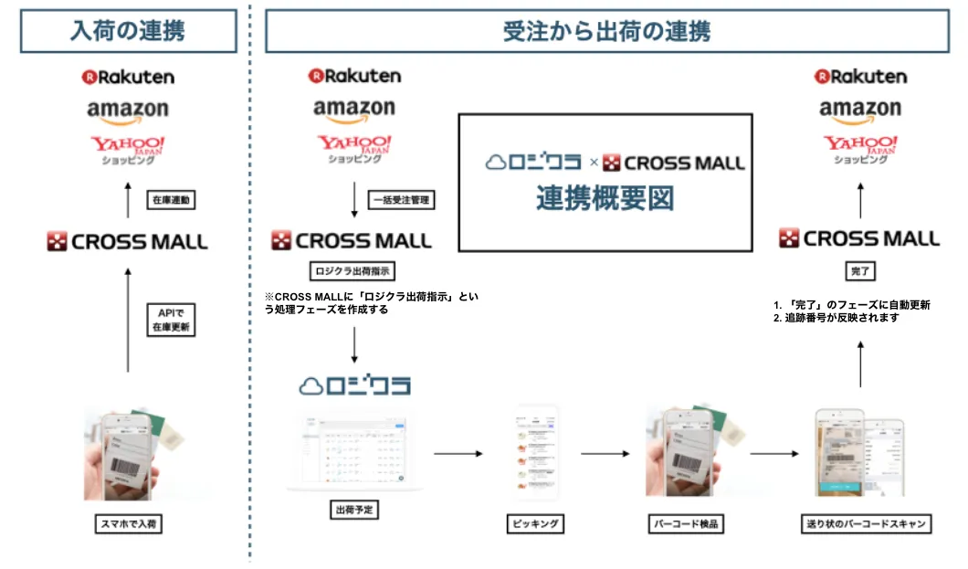 またCROSS MALLに集まる注文情報をロジクラへと連携しています。
