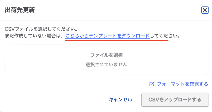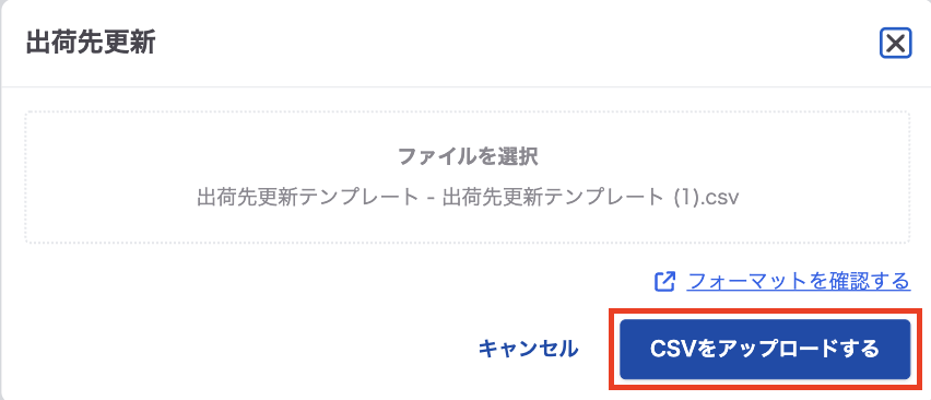 .2. で作成したデータをファイル選択し、「出荷先を更新する」をクリック