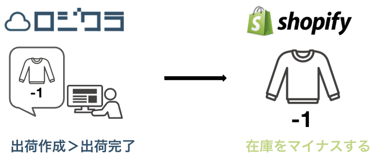 Shopifyから取り込んだ注文以外に、ロジクラで作成した注文(出荷情報)を出荷完了とした際に、Shopifyの在庫数をマイナスにします。