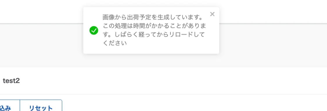処理が完了すると、出荷予定一覧画面の上部に完了メッセージが表示されます。