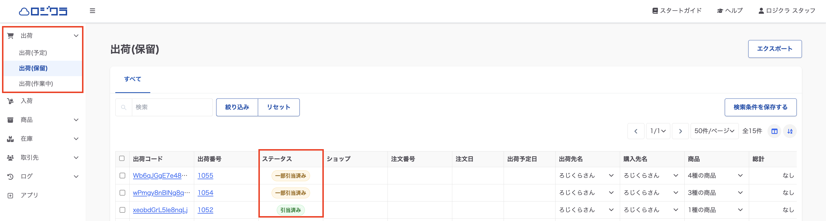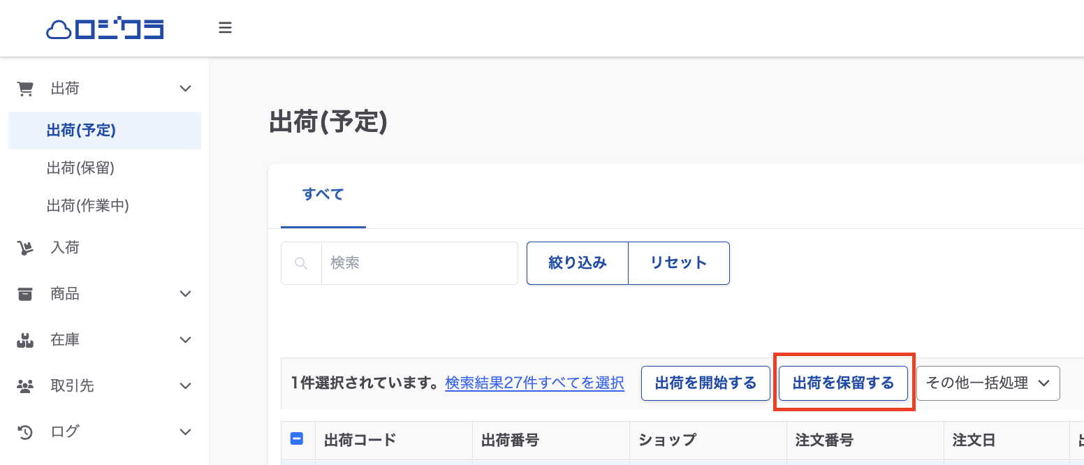 ※ 出荷保留にした出荷データは旧デザインの出荷予定、出荷作業中の一覧からは確認ができなくなります。