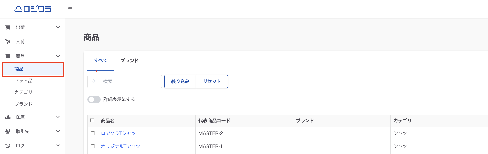 左側メニューバー 商品 > 商品 をクリックし商品一覧を開く