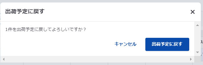 「XXX件を出荷予定に戻してよろしいですか?」と警告が表示されるので、選択している出荷件数を確認してください。