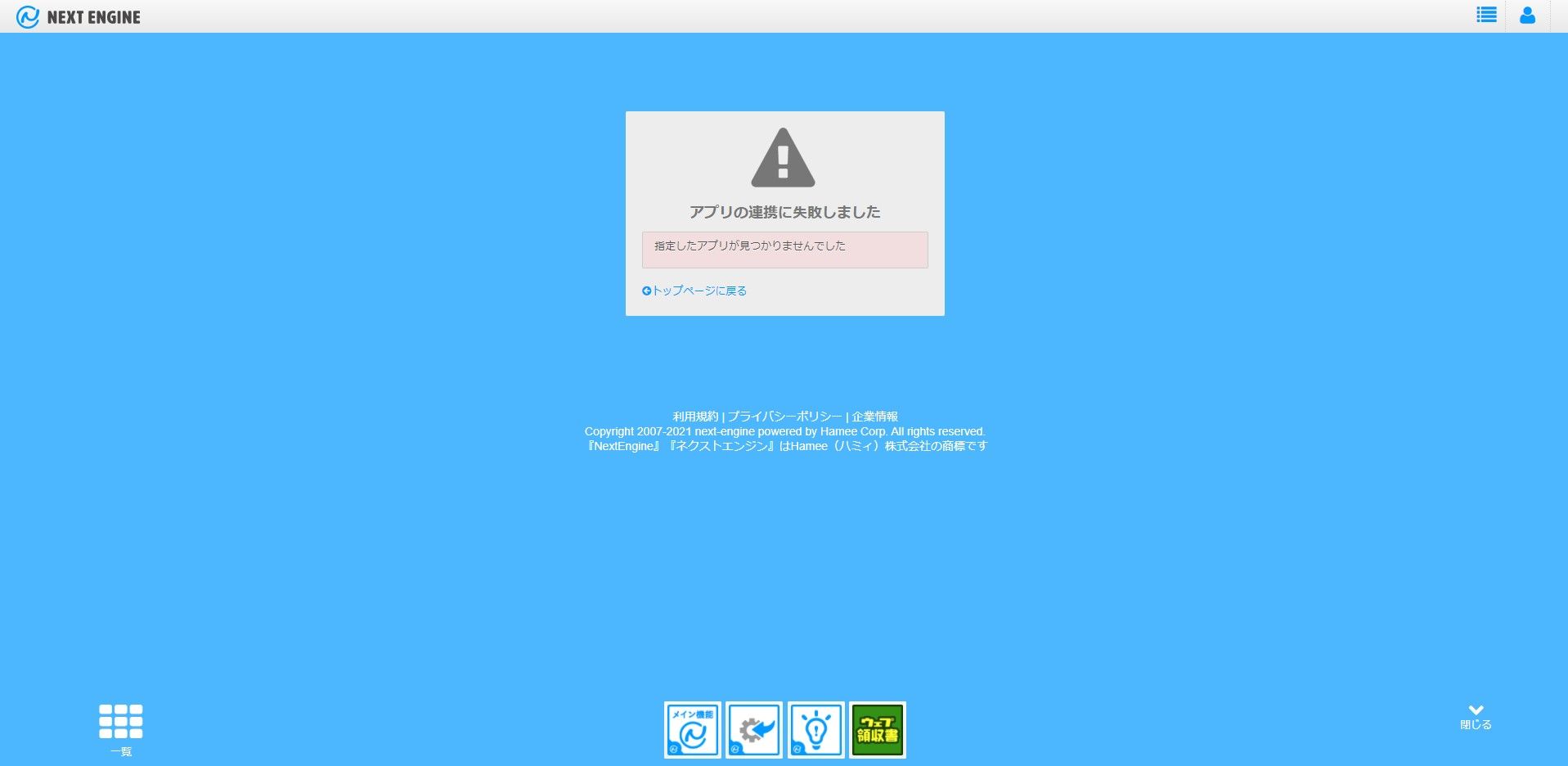 ネクストエンジンTOPページ( https://base.next-engine.org/ )から確認します。