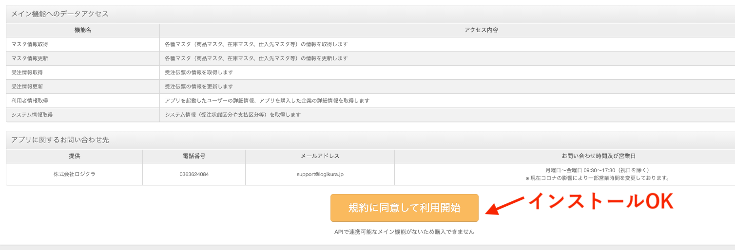 ページの最下部にある「規約に同意して利用開始」がクリックできない状態になっていればインストール済みになります。