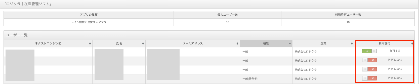 ユーザー一覧の「利用許可」を「許可する」に設定してください。
