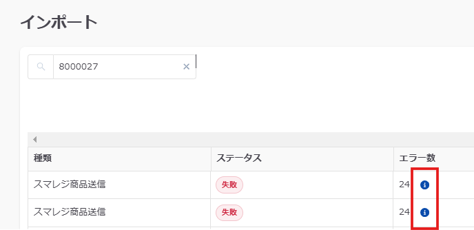 失敗した場合、エラー数の隣にあるアイコンからエラー内容を確認してください。