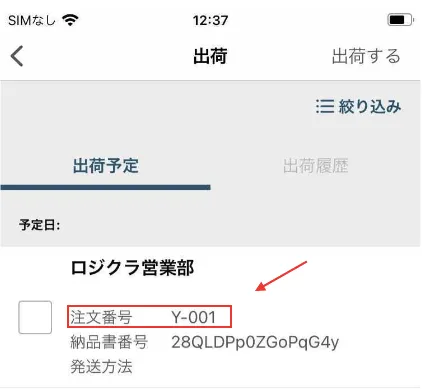 よって、CROSS MALLで発行した納品書をアプリでスキャンして出荷を開始できないので、納品書に記載される注文番号と、ロジクラ出荷予定に記載の注文番号を目視確認することで、出荷作業を開始します。