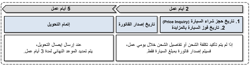 *بعد الفوز بالمزايدة، يجب تحويل مبلغ العرض الفائز وتكلفة الشحن في غضون5 أيام عمل من تاريخ إصدار الفاتورة.