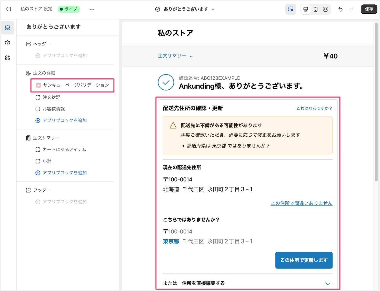 アップグレードによる大きな変更点としては、今までアプリ側で個別に行っていたサンキューページへの機能追加を、テーマと同様に「チェックアウトエディタ」という画面でストア側で一元的に行えるようになる点です。