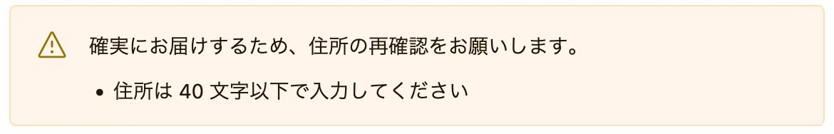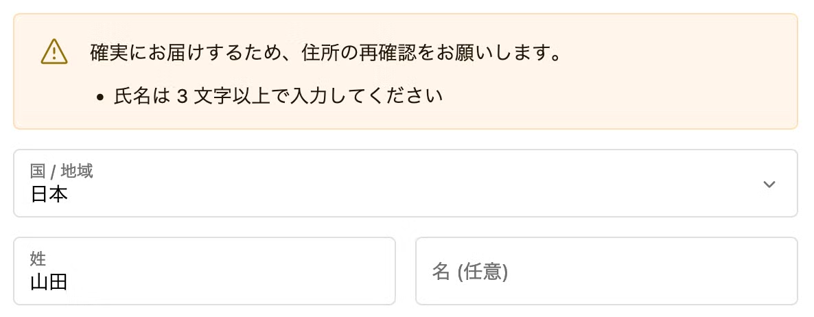 ストアのチェックアウト中の配送先住所入力時に住所チェックを行い、住所の誤りがある場合に購入者様に通知する機能です。