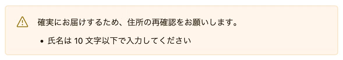 確実にお届けするため、住所の再確認をお願いします。 の箇所の文言を自由に設定できます。