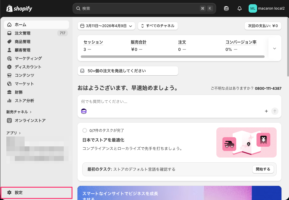 1. Shopify管理画面 → 設定 → チェックアウト → チェックアウトルール を開く
