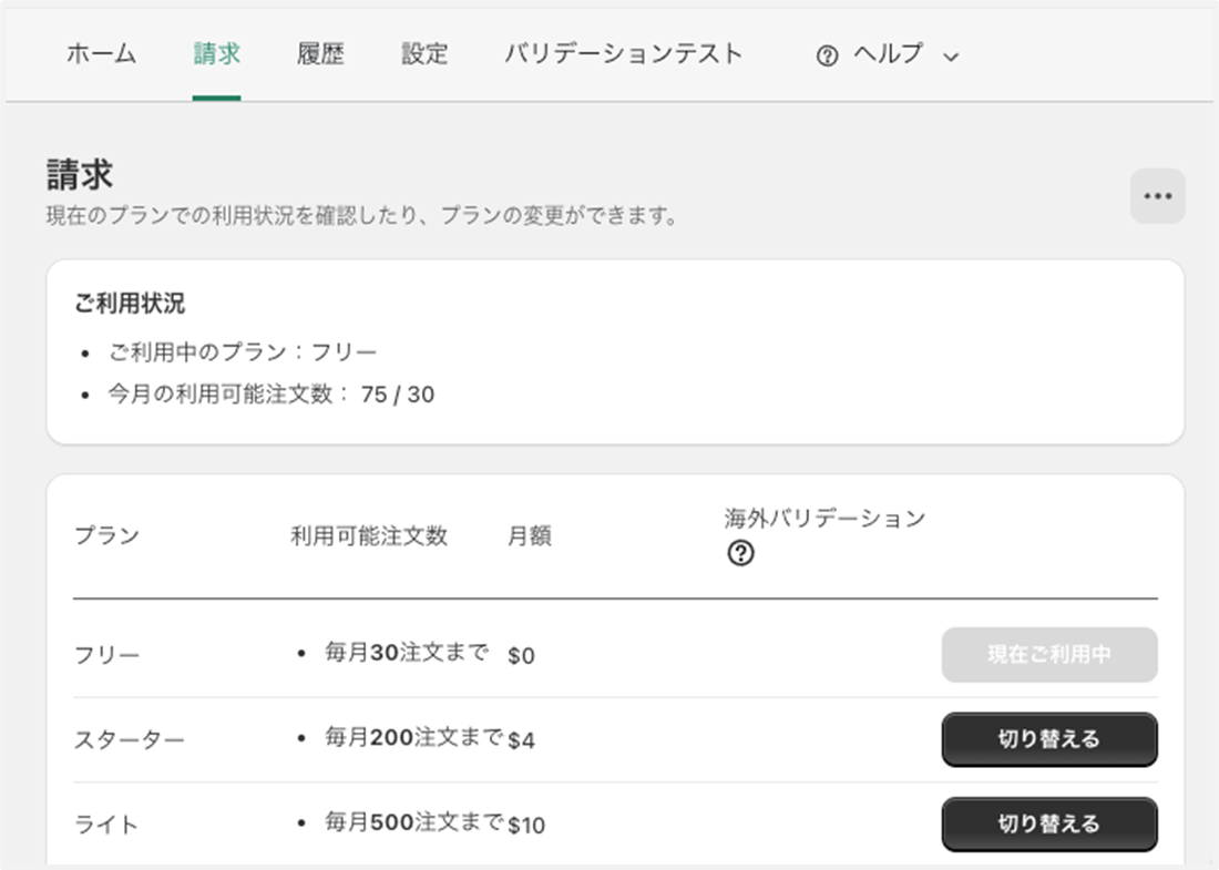 ストア環境に関わらず、無料プランとして注文30件/月 がご利用いただけます。
