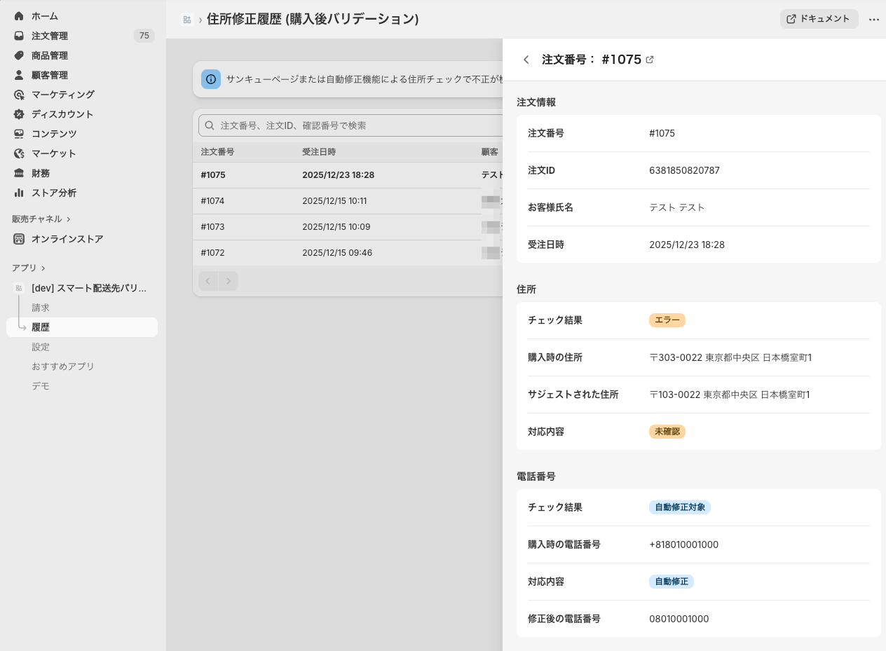 上部のメニューバーは、Shopifyアプリの推奨に沿って削除されました。画面の移動は左側のメニューをご利用ください。