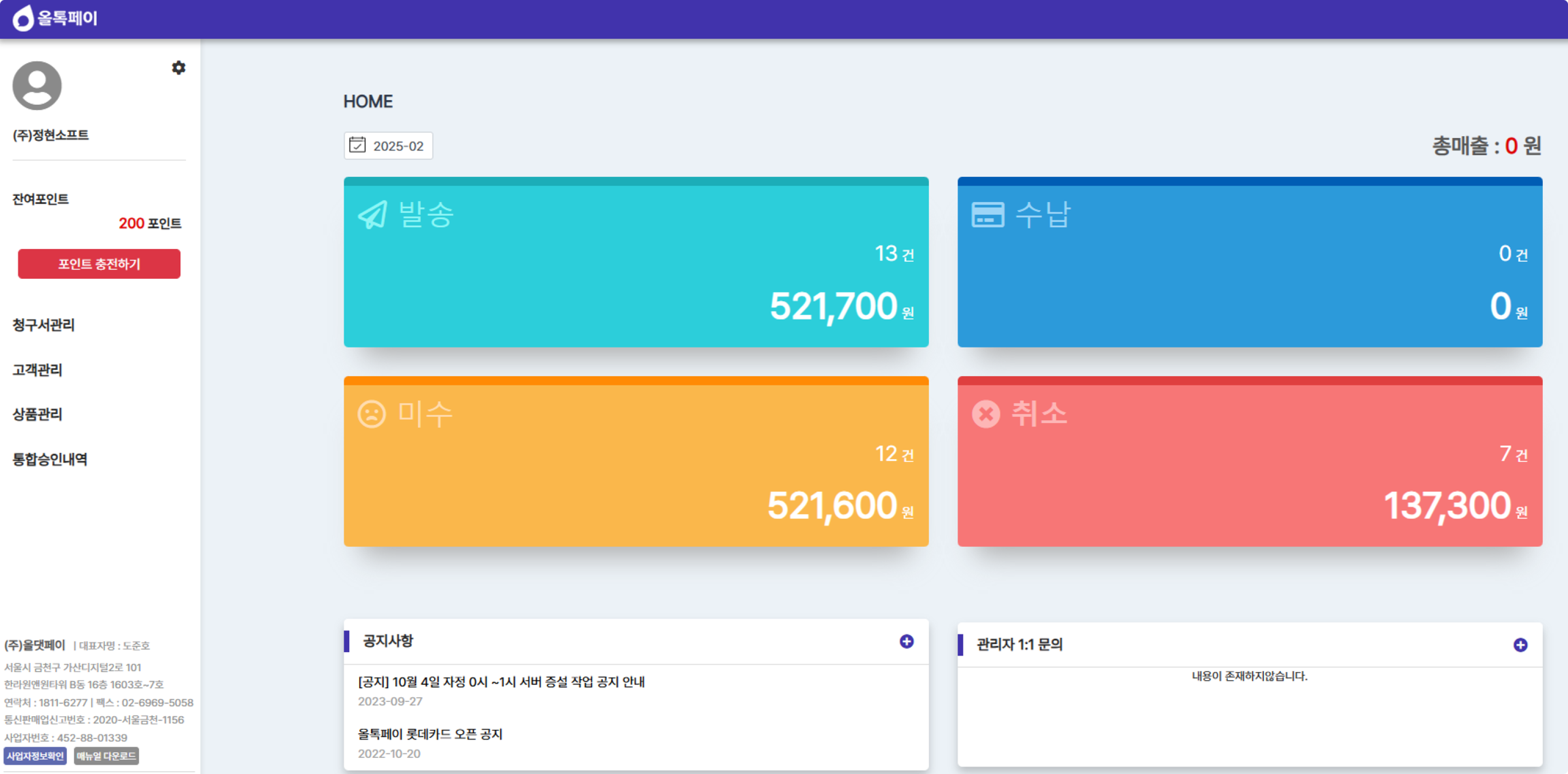 결제 현황만 확인가능하니 이 점 유의바랍니다.