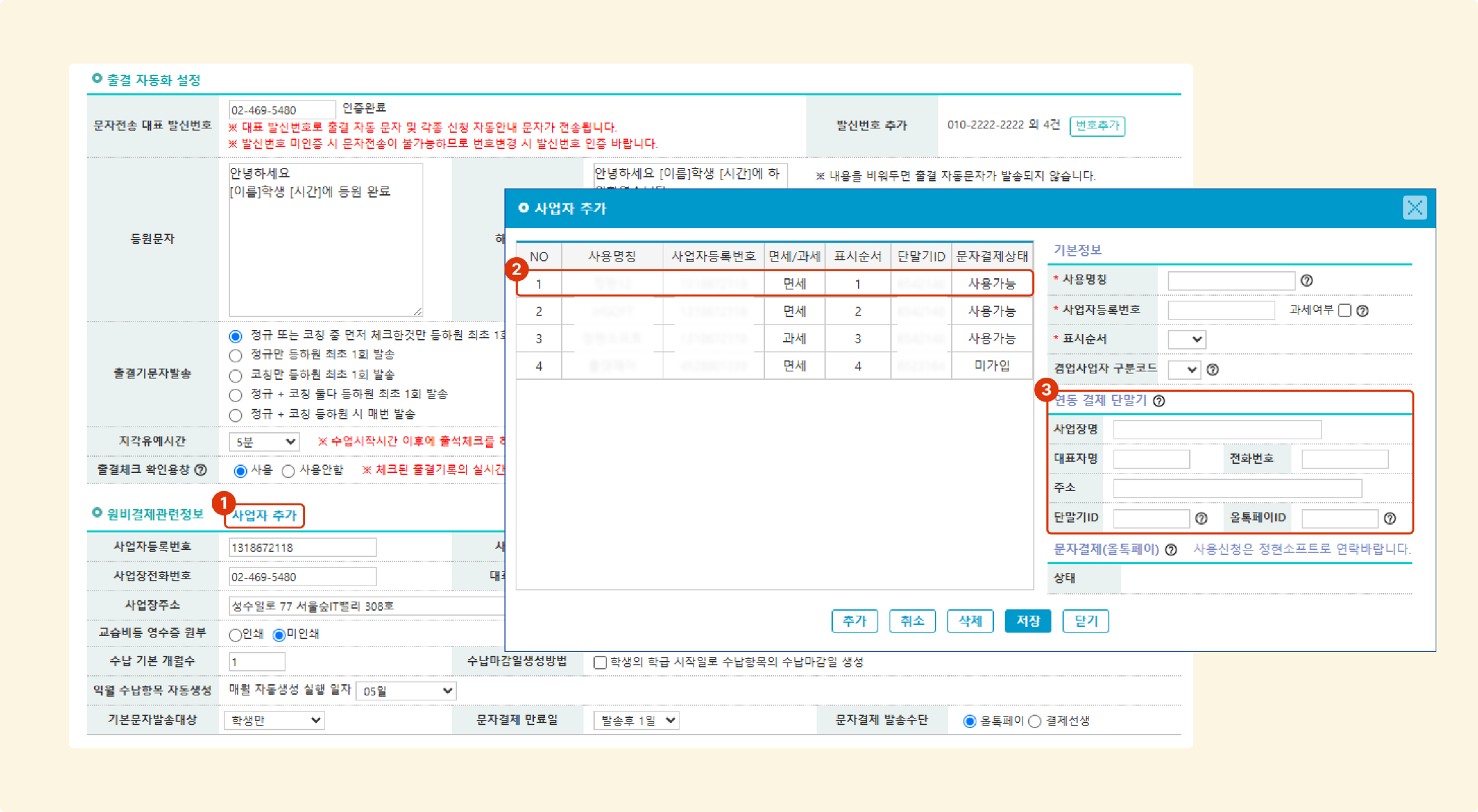 연동 결제 단말기 영역의 학원 정보를 최신화합니다.