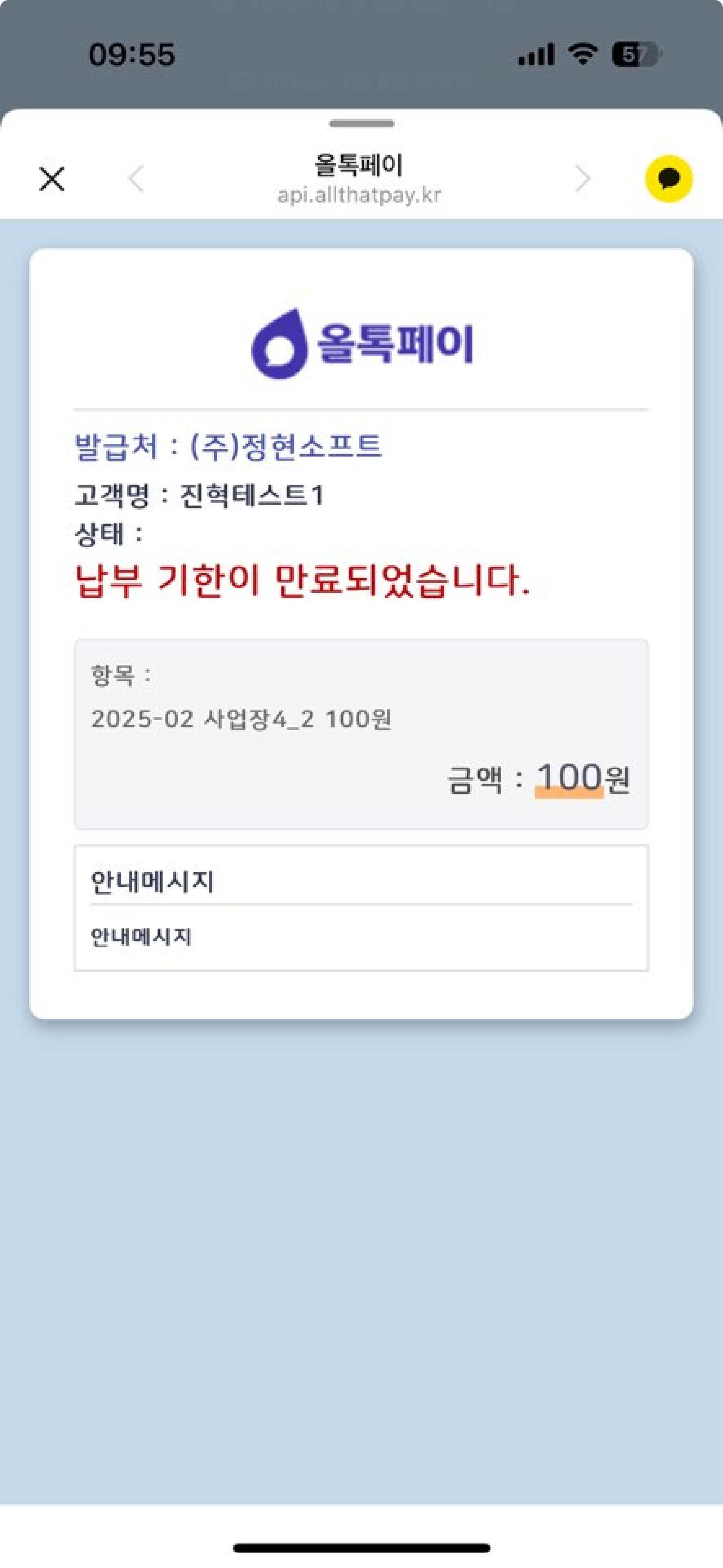 파기 처리가 되면 해당 청구서로 결제를 진행할 수 없습니다.