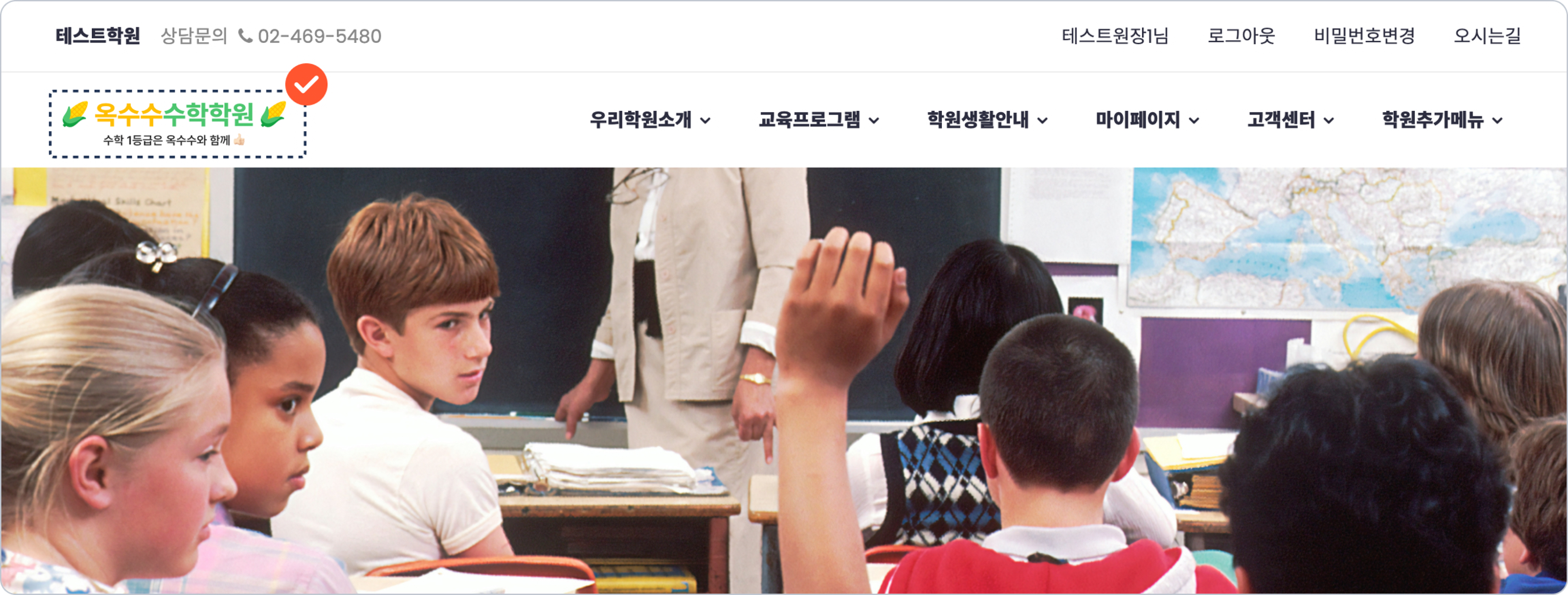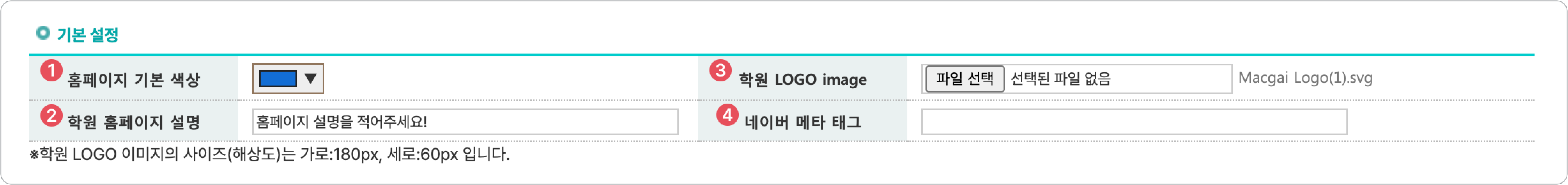 홈페이지 상단에 표시 되는 학원 로고 이미지를 변경할 수 있어요.