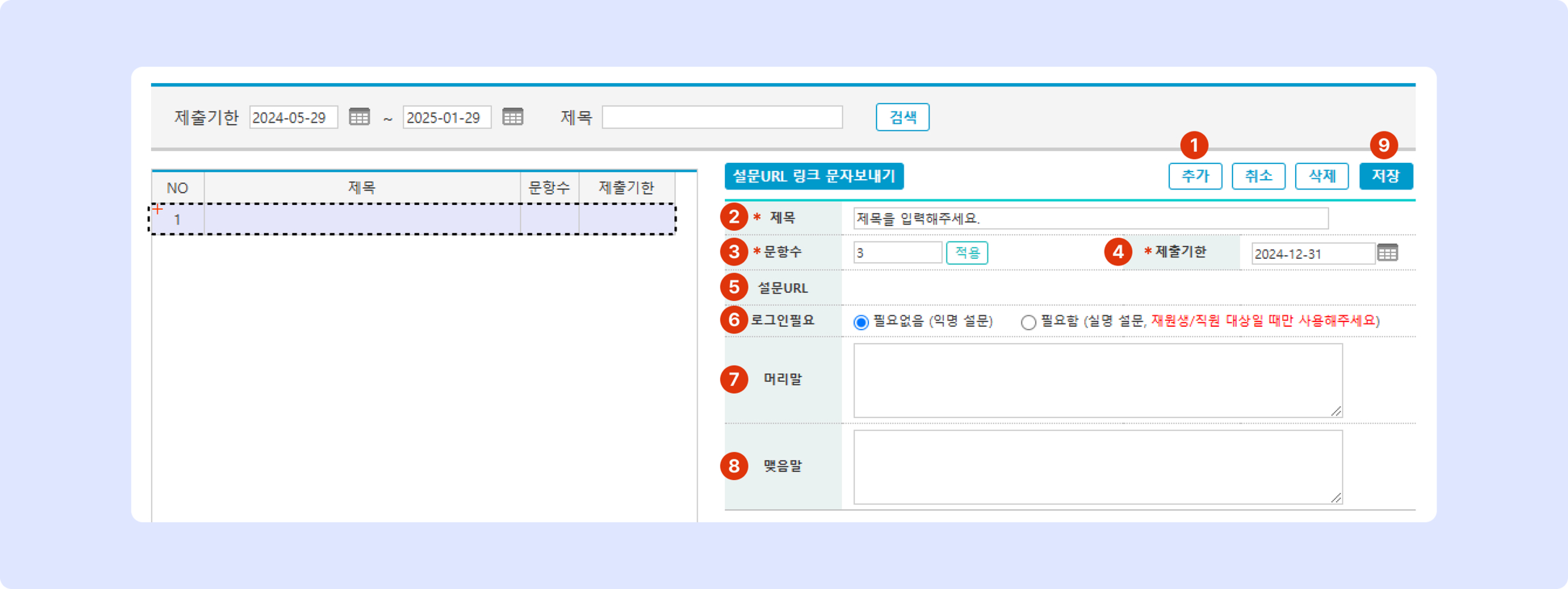 설문 마감 기한 설정이 가능합니다.