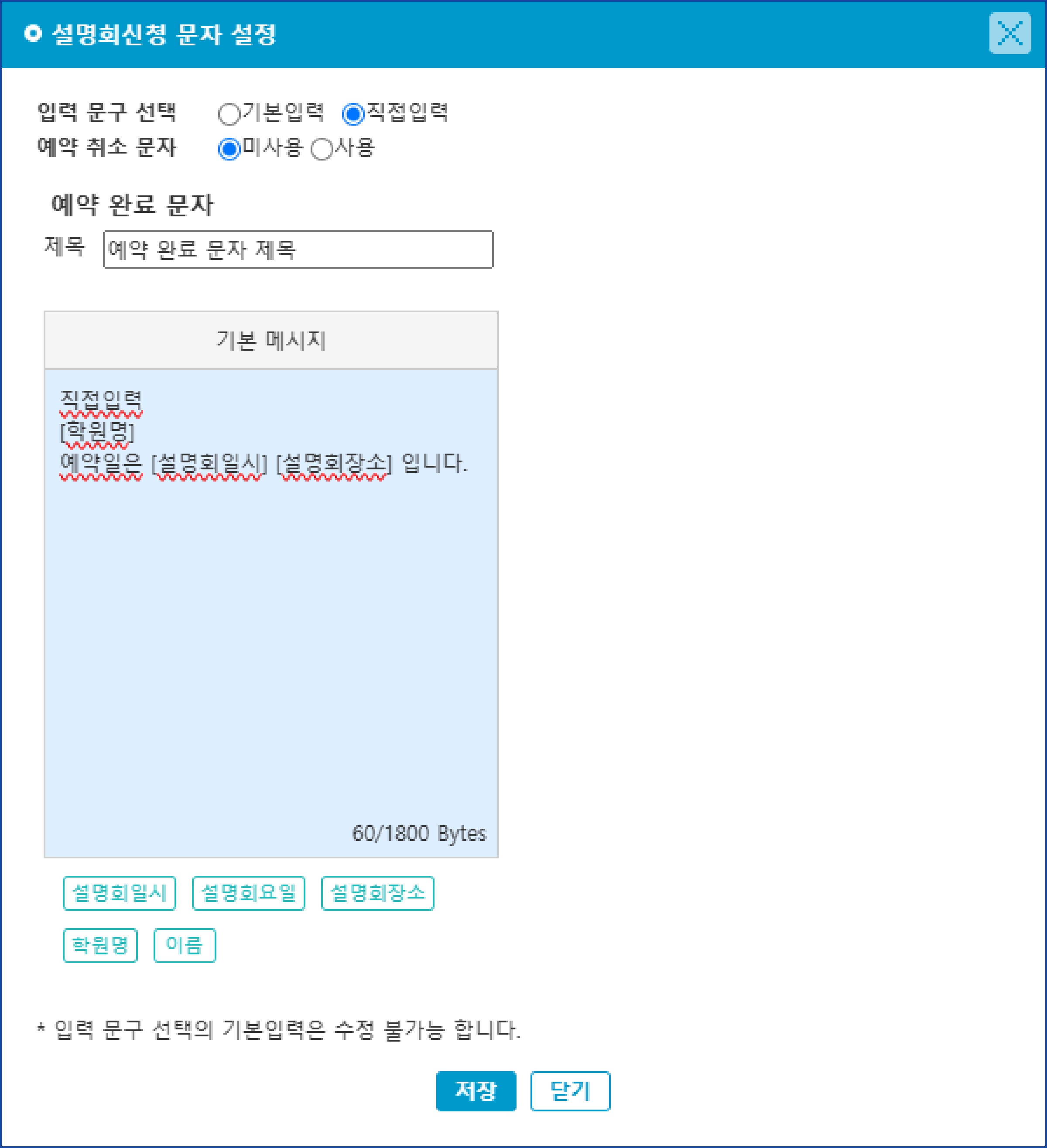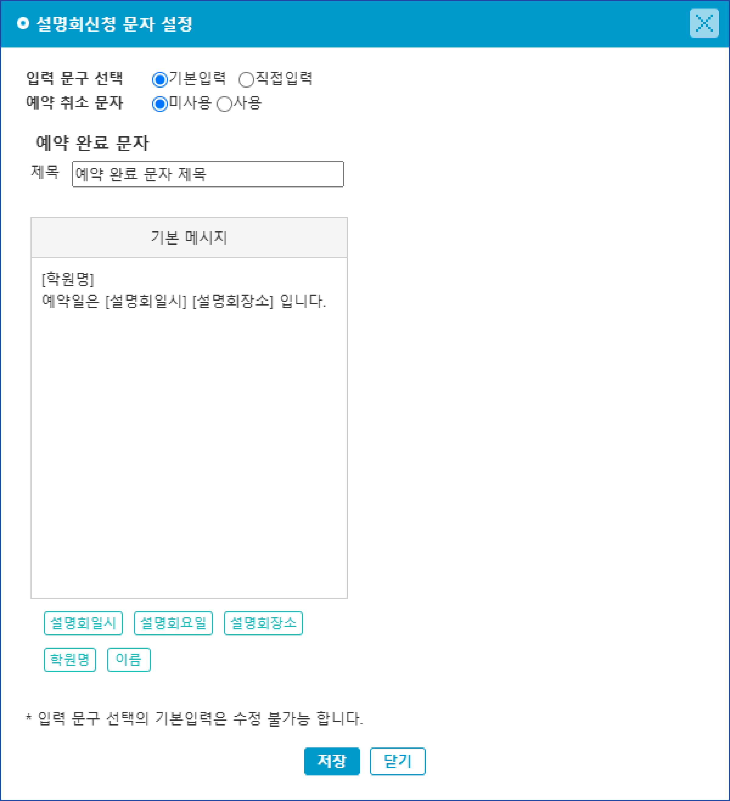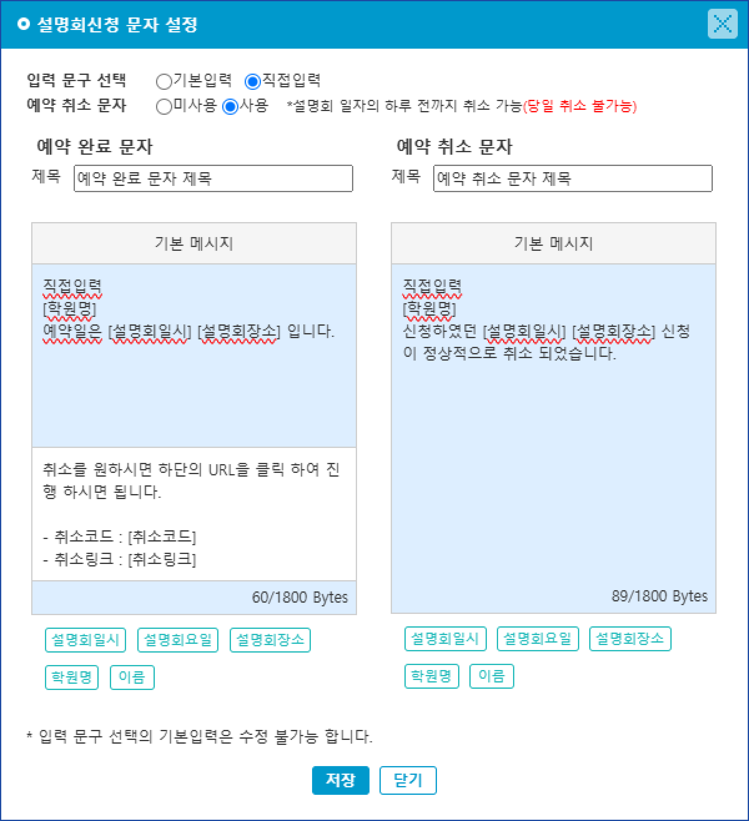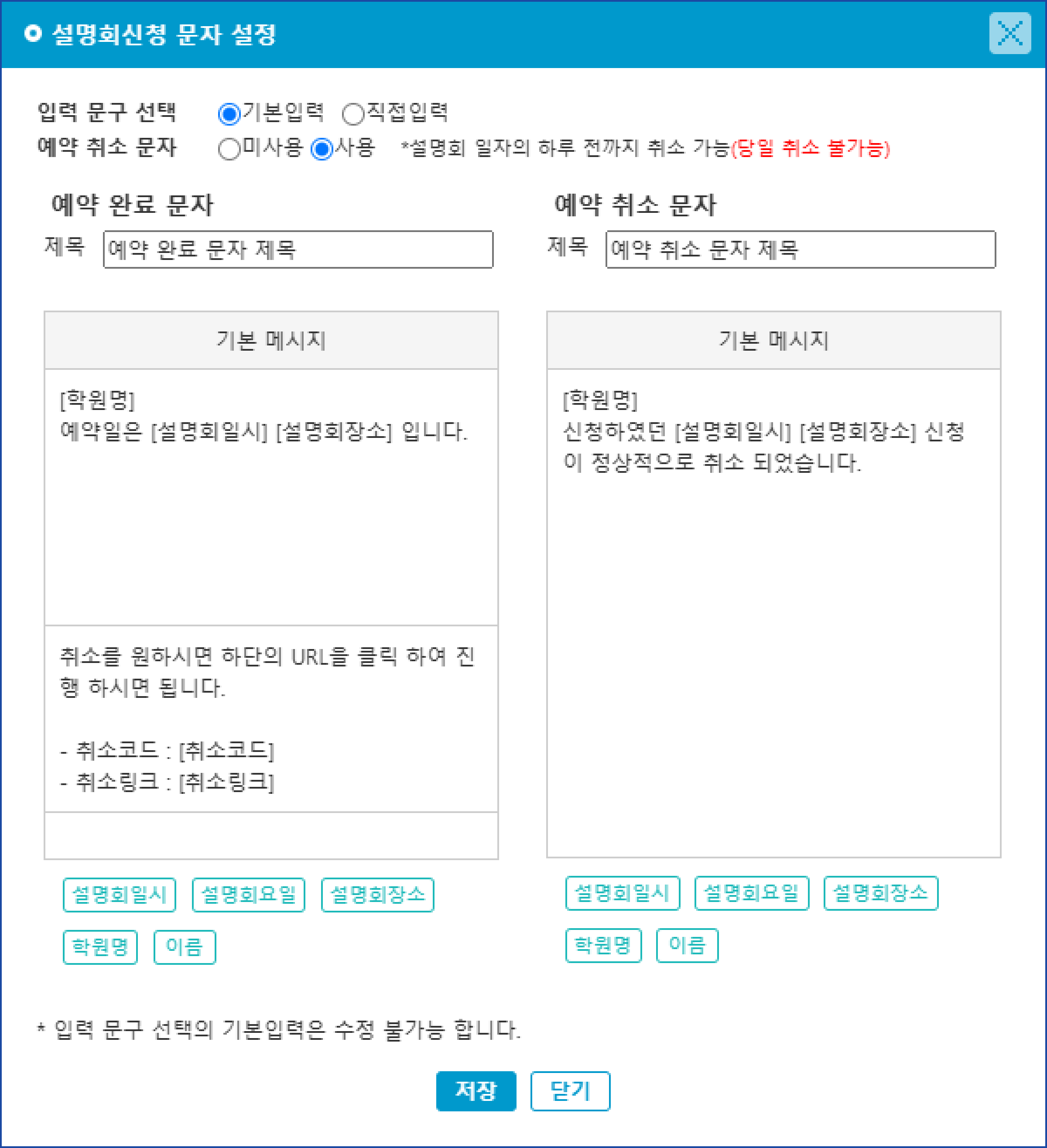 설명회 이외(수강신청, 특강 등) 예약 문자로 사용 시 적절합니다.
