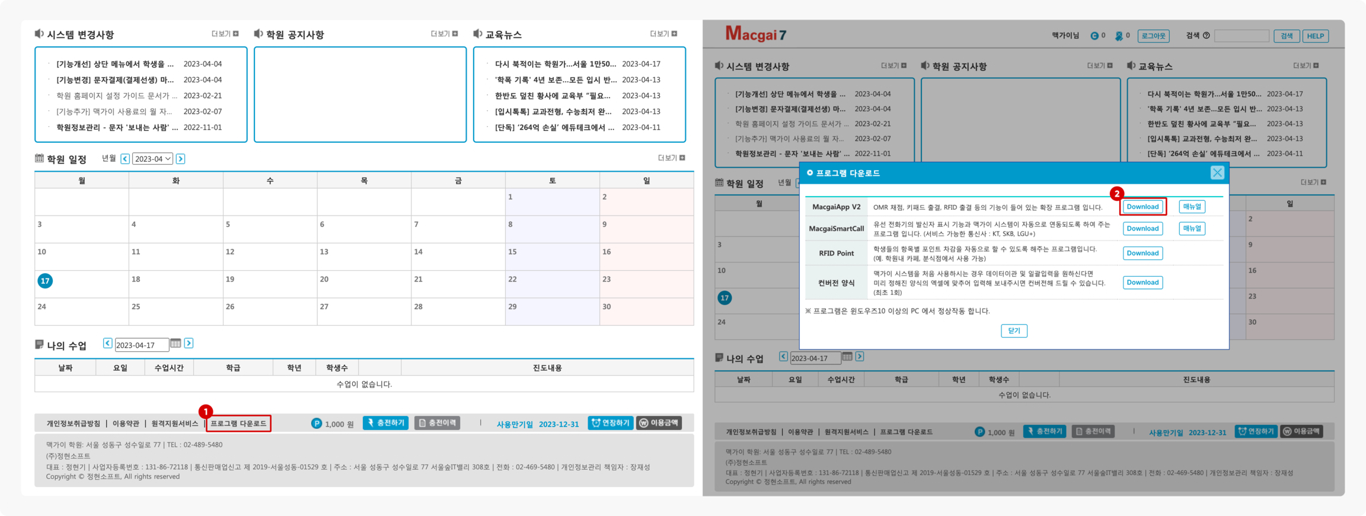 하단 메뉴에 있는 [프로그램 다운로드]를 눌러주세요.